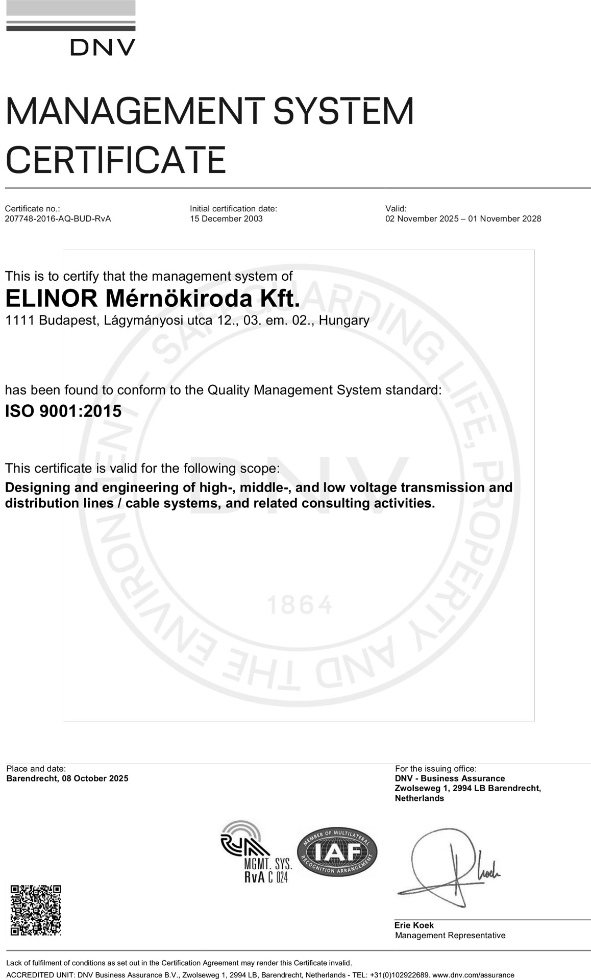 Elinor Engineering Ltd. is a Hungarian private limited company, which was founded in 1993. Our main focus is the energetics planning: the establishment and reconstruction of high-voltage and medium voltage transmission and distribution lines and ground cable connections.